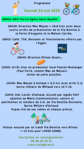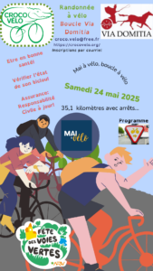 Crocovelo vous propose une randonnée a Vélo le 25 Mai 2025 sur la ViaDomitia !!! Venez nombreux !!!