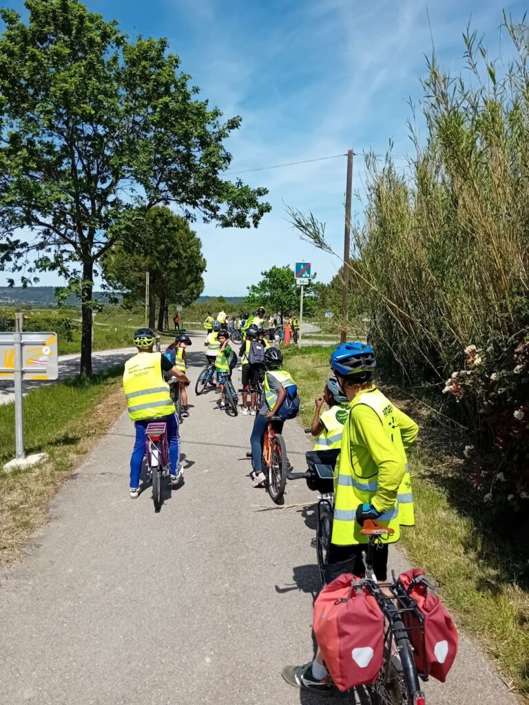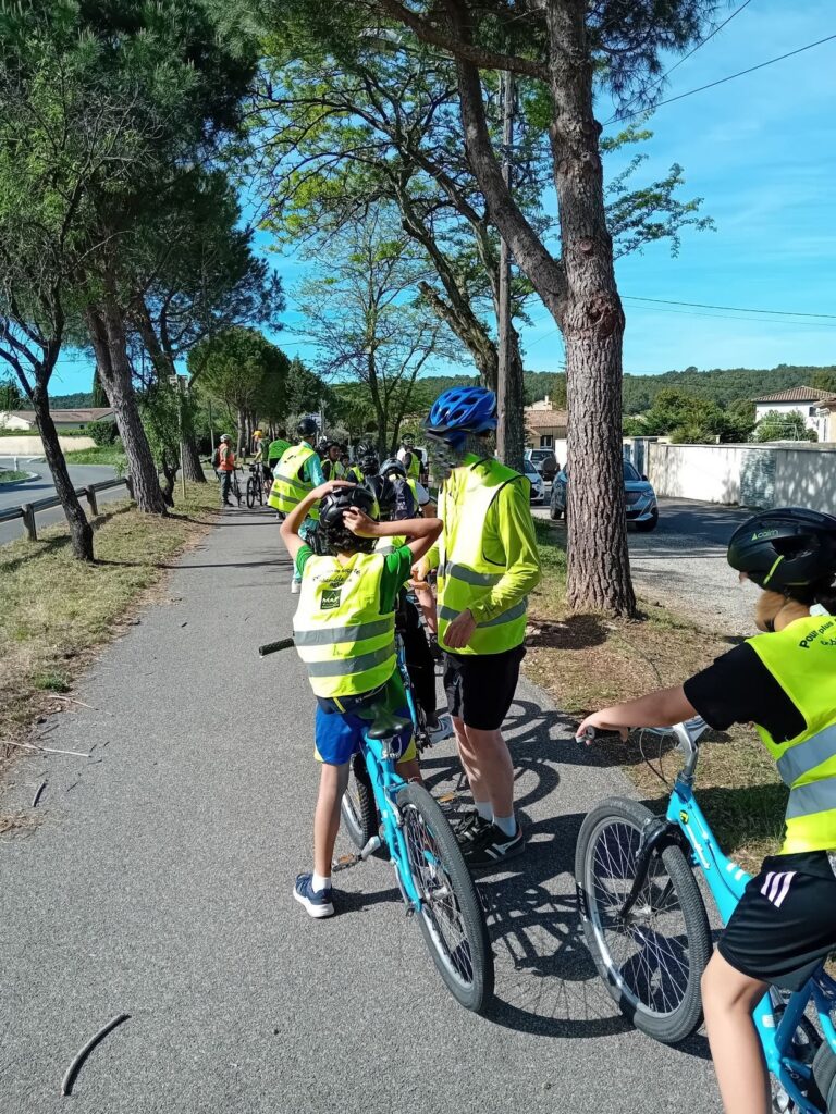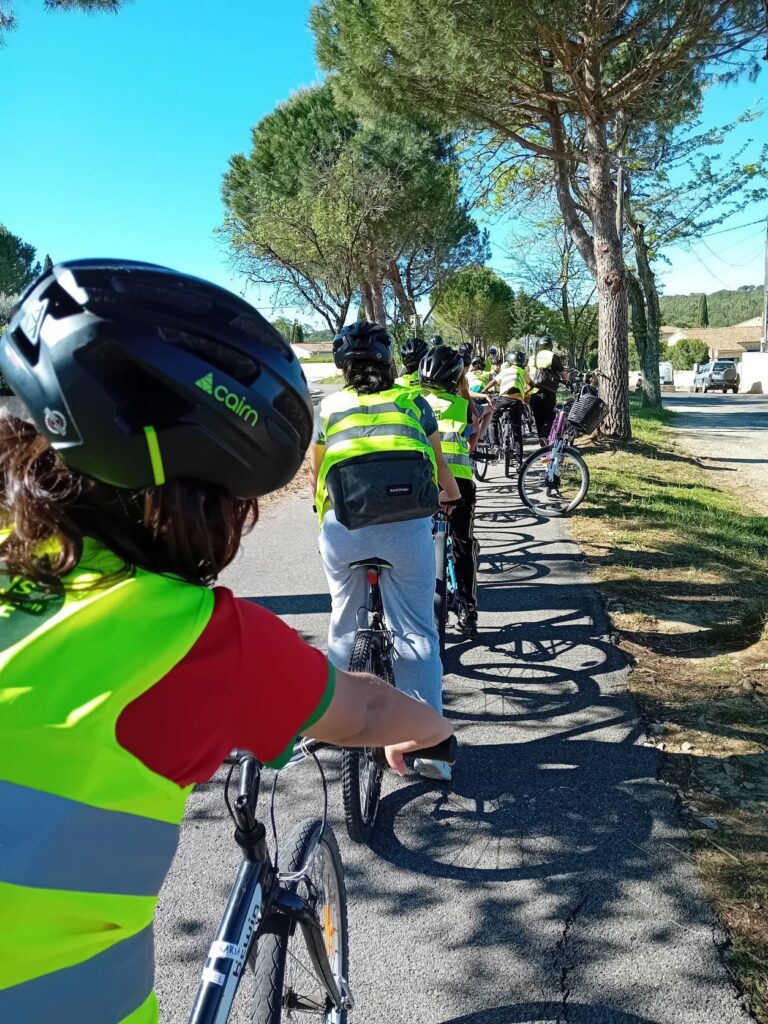 Chaque année CrocoVélo accompagne des classes de CM2 de l’école Lakanal pour deux sorties sur la voie verte de Caveirac à vélo. Fanny, la directrice, avec l’équipe enseignante organise cette aventure depuis plus de 10 années afin valider le Savoir Rouler à vélo (SRAV).
