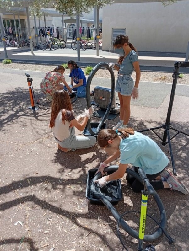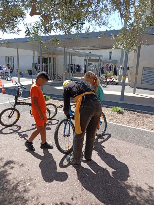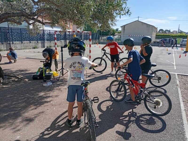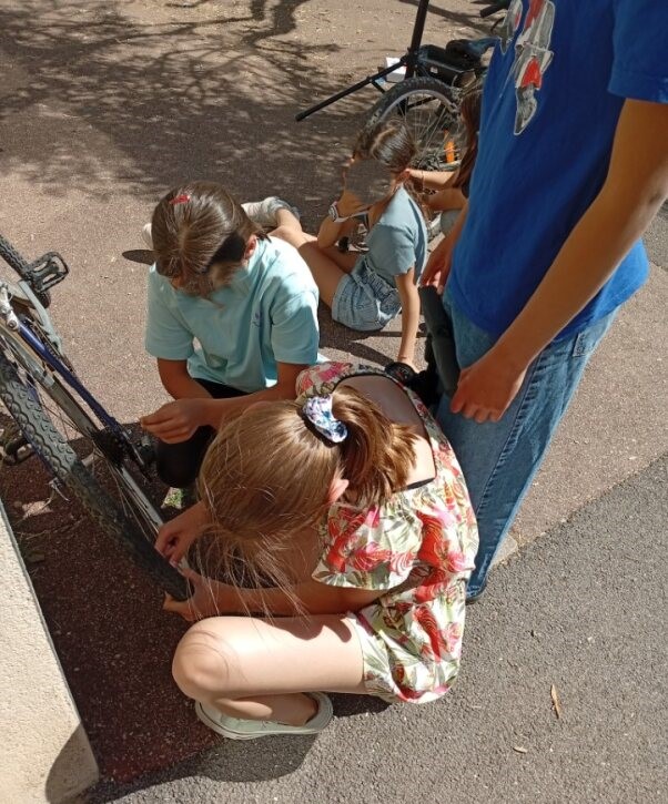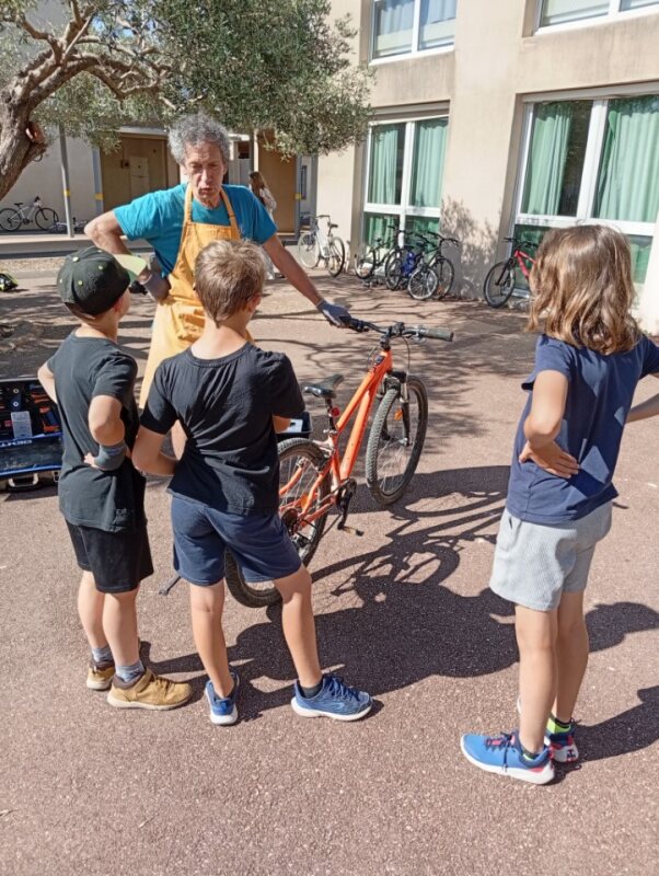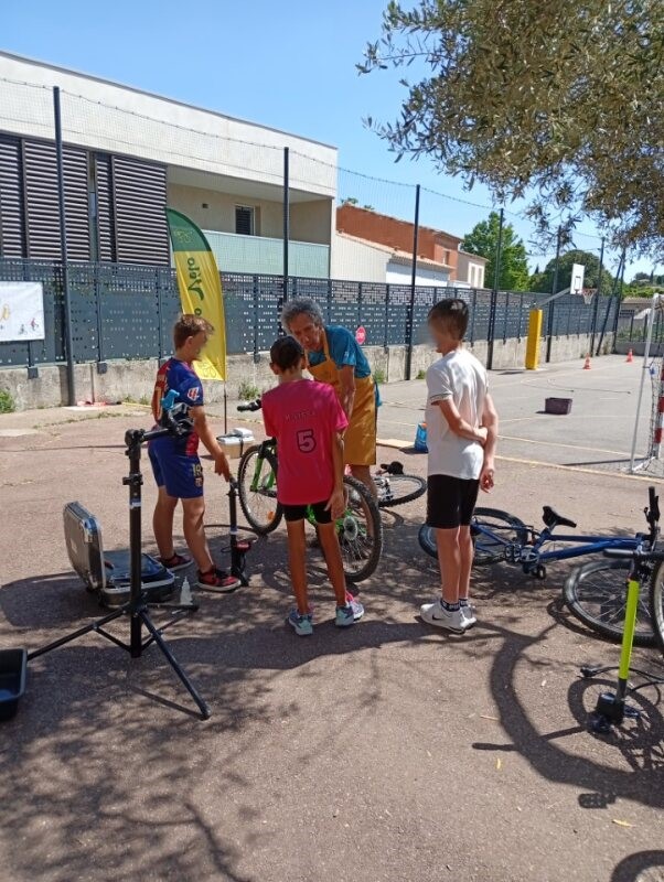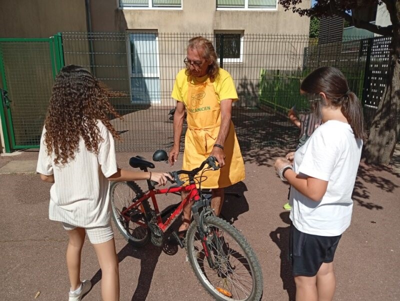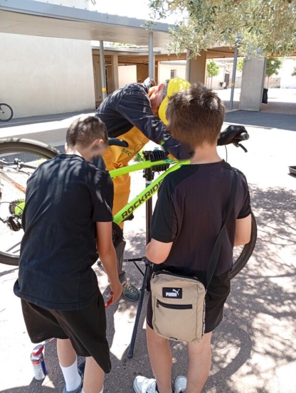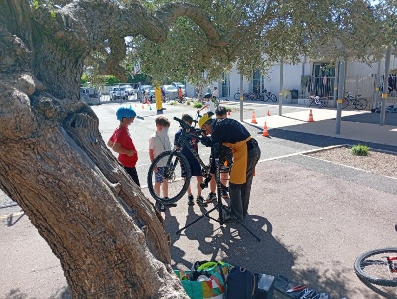 L’occasion fût aussi de faire quelques réglages des vélos des élèves et donner des conseils mais aussi de remettre en état le parc à vélo de l’établissement scolaire.