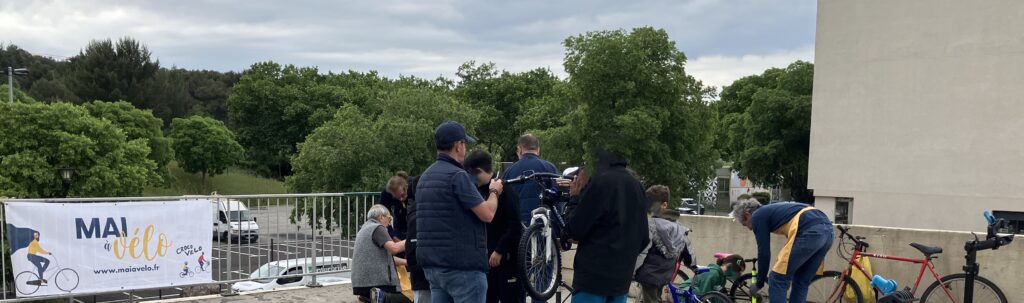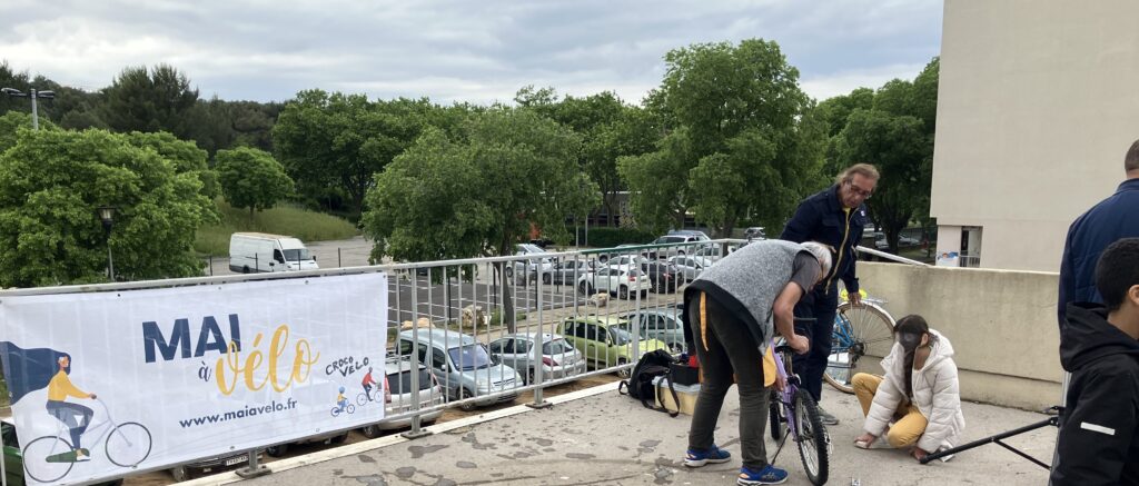 Dans le cadre de Mai à Vélo, les Crocos ont été sollicités pour leur 2ème participation au vide-grenier du Foyer socio- éducatif du collège et de l’association Amaos située place Watteau au quartier Pissevin.