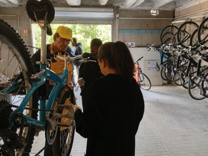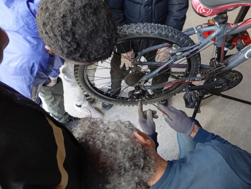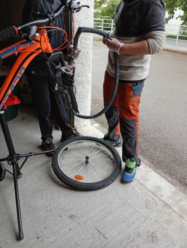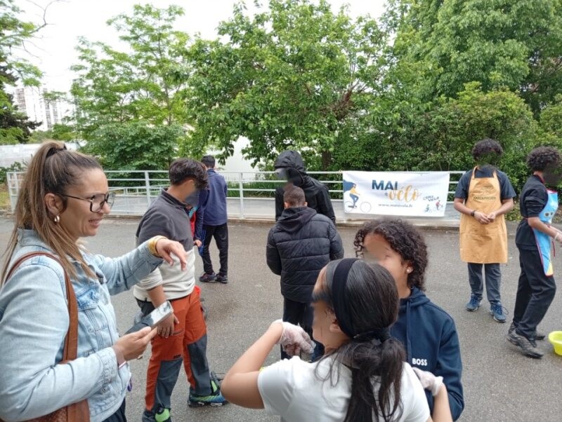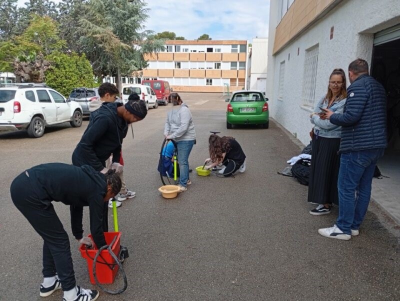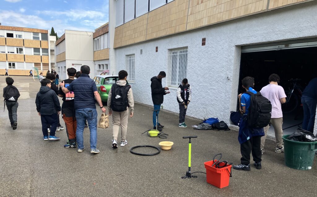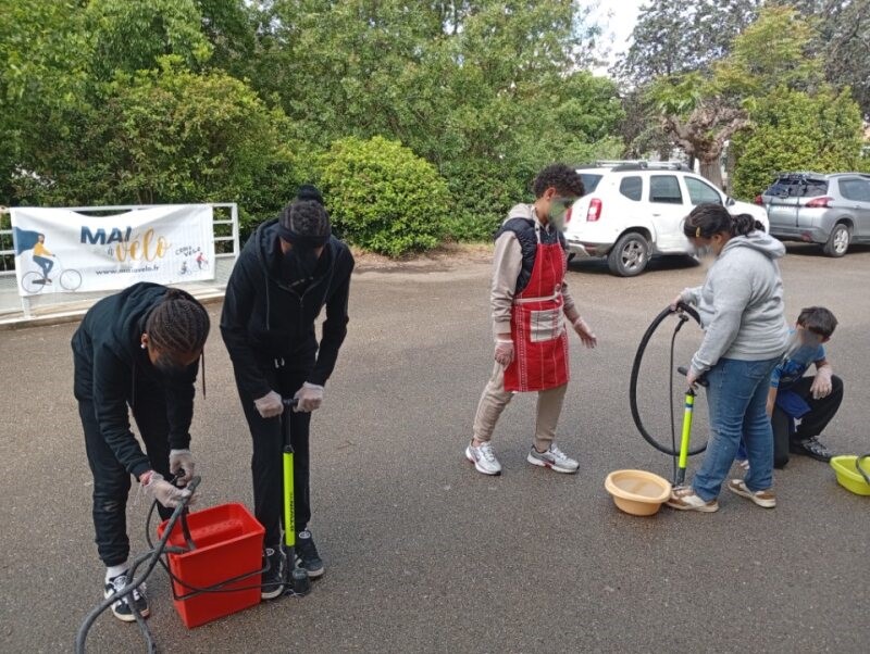 L’équipe des Crocos leur a apporté un accompagnement par groupe et leur a donné des conseils pour être plus autonome en cas de problème mécanique. L’équipe de Mai à Vélo de Nîmes Métropole leur a remis un présent à la fin du défi « Repérer un crevaison ».