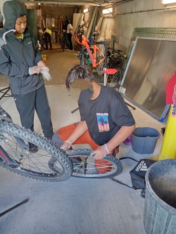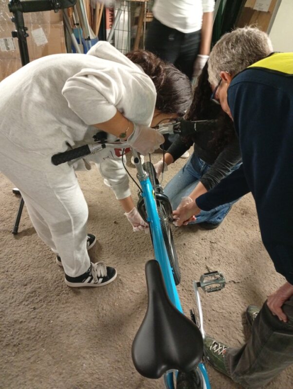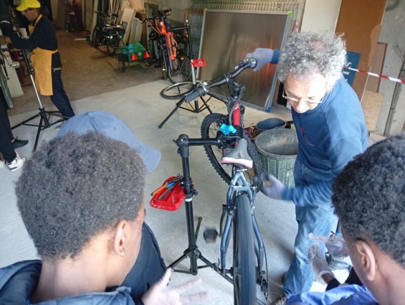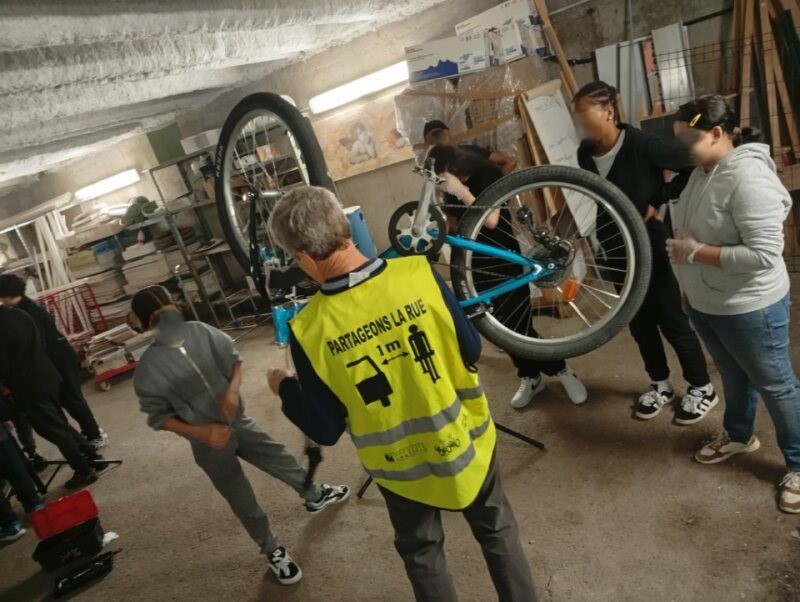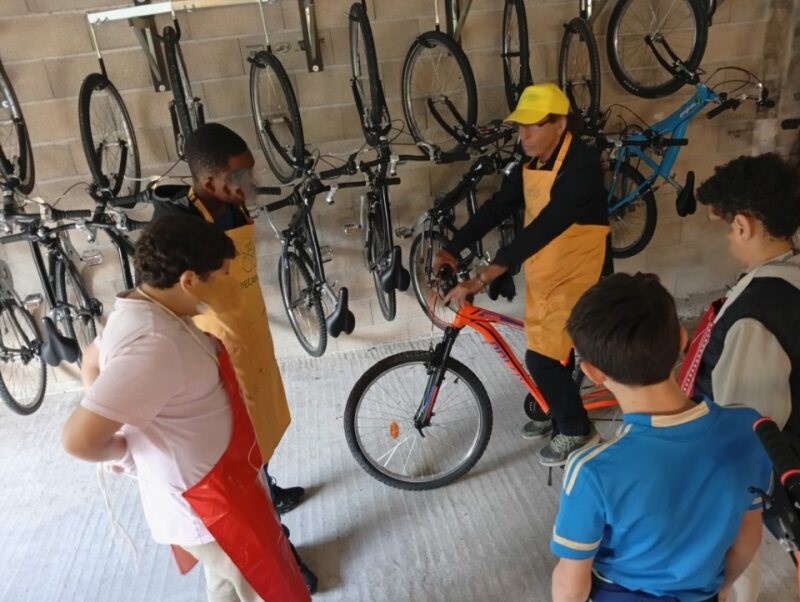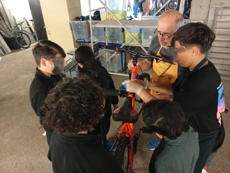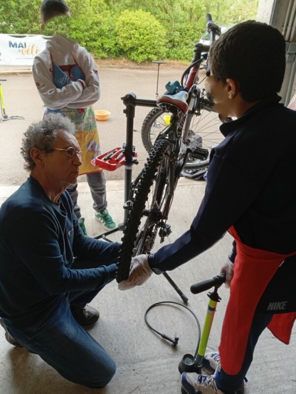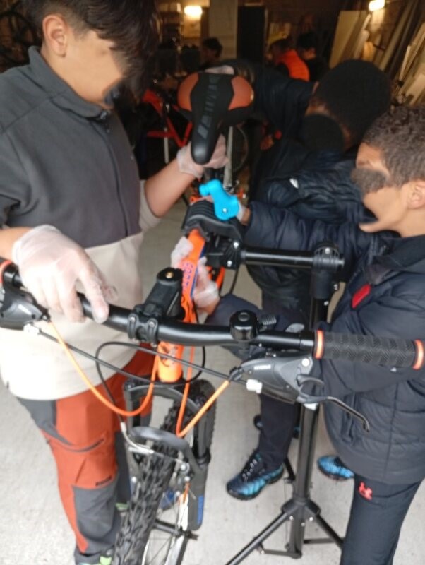 Le 2ème est le Collège Nicolas De Condorcet. De 08H00 à 12H00, 48 élèves de 6ème et de 5ème SEGPA ont pu participer à des ateliers pédagogiques concernant les réglages et des réparations : régler la hauteur de la selle, remettre en place une chaîne déraillée, démonter une roue, repérer une crevaison et tenter de la réparer…