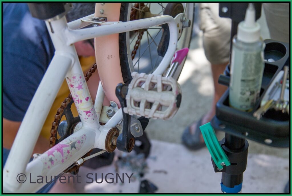 L’équipe des Crocos est intervenue pour s’occuper des biclous des différentes générations présentes aux ateliers.
